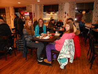 At last all of the guests arrived, but someone them only popped in to say "goodbye" so really we only had two more actual guests come and stay. After eating more food, we sat down to enjoy some desert that Georgia had made for everyone.